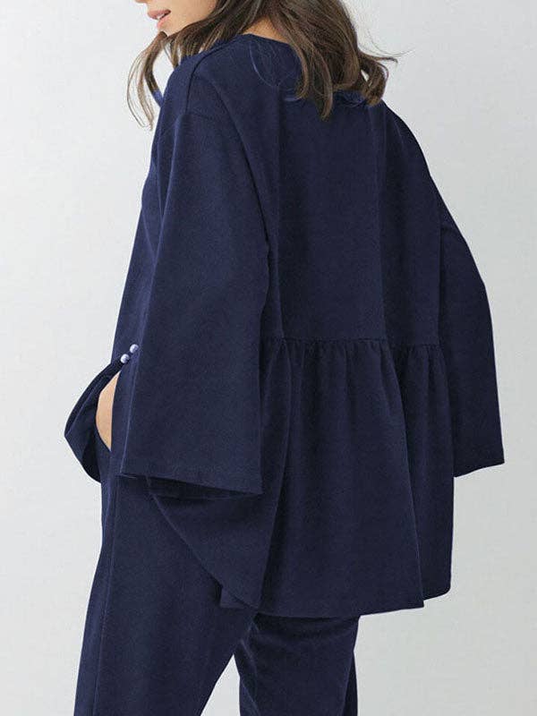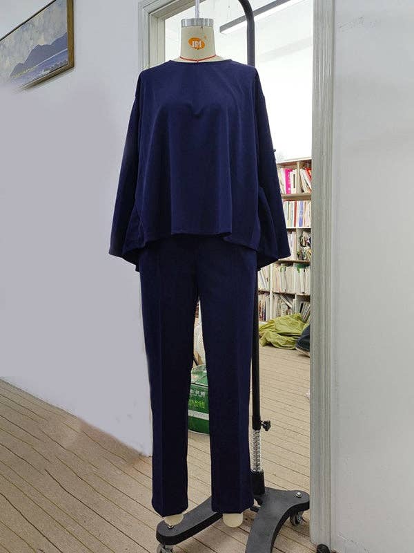 Introducing our Batwing Sleeves Two Pieces Set, crafted from premium cotton for maximum comfort. The chic loose style offers a flattering fit and features elegant batwing sleeves and a round neck. Adorned with delicate beading, the high-low top pairs perfectly with the elastic pleated pants. Ideal for stylish leisure wear in spring and autumn. Now available in plus sizes M-3XL. Upgrade your wardrobe today!