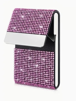 Transform your business cards into a dazzling display with our Faux Leather Magnetic Closure Business Card Holder. This stylish accessory boasts sparkling rhinestones and a sleek design that will elevate your professional image. Plus, it can also double as a chic credit and ID wallet for busy and stylish women on the go.