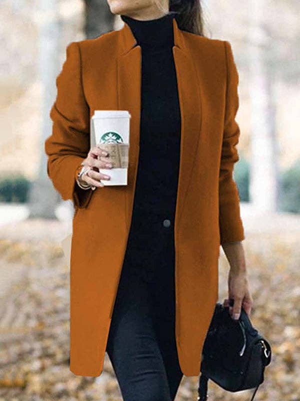 Elevate Your Style with this Stunning Stand Collar Outerwear Woolen Coat! Featuring split-joint long sleeves and a solid color design, this coat exudes a formal and professional look. Made from high-quality polyester, it is ideal for the workplace, city outings, and casual events in the cooler seasons. Choose from a variety of stylish colors and sizes to suit your personal taste and elevate your wardrobe with this must-have outerwear piece.